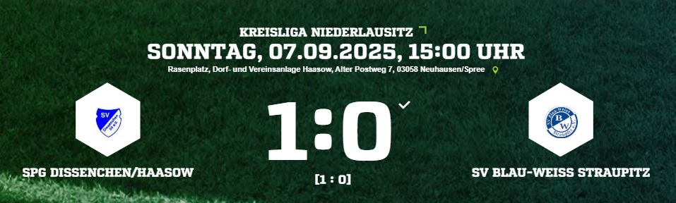 Endlich wieder Punktspiel-Fußball in Haasow! Zum Auftakt der neuen Kreisliga-Saison empfing unsere SG Dissenchen/Haasow am Sonntag die Gäste vom SV Blau-Weiß Straupitz. Die Vorzeichen für unsere Elf standen dabei durchaus positiv: Einer starken und ungeschlagenen Vorbereitung, gekrönt von einem Achtungserfolg gegen den klassenhöheren Pokalfinalisten aus Kahren/Laubsdorf, stand ein Gegner mit SV Blau-Weiß Straupitz gegenüber, der sich bereits in der Vorwoche aus dem Pokalwettbewerb verabschieden musste. Doch der erste Spieltag schreibt bekanntlich seine eigenen Gesetze, und so entwickelte sich eine umkämpfte Partie, an deren Ende unsere SGD mit einem knappen, aber verdienten 1:0-Heimsieg die ersten drei Punkte der Saison einfahren konnte.